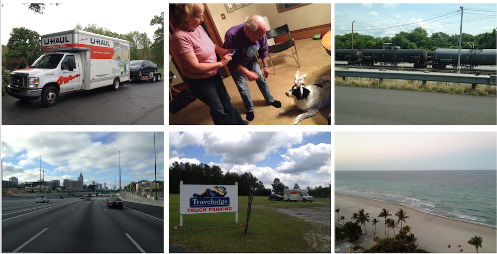 Move from Milwaukee, WI to Hollywood, FL: Milwaukee, WI, Brazil, IN, Chattanooga, TN, outside Atlanta, GA, Lake City, FL, Hollywood, FL April 19 - 24, 2012