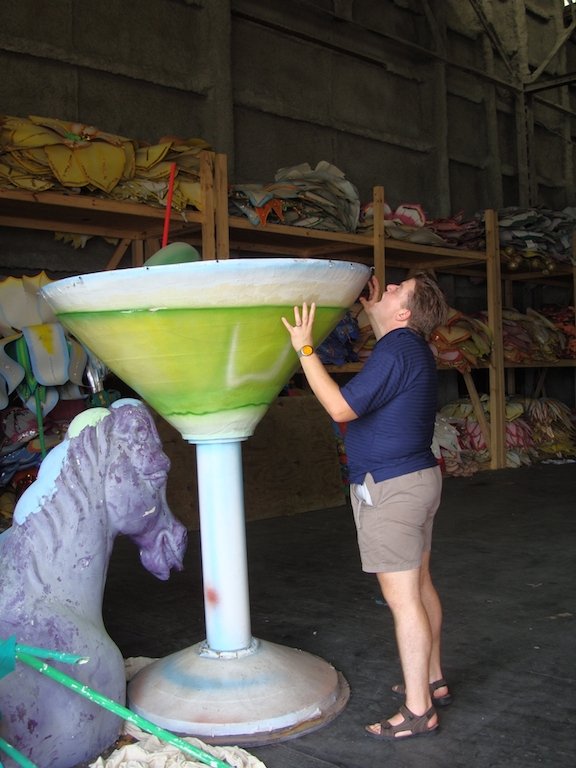 We had a conference in Baton Rouge and then spent a few days walking around New Orleans. We took a ferry ride to see everything, and then took a walk way out to where they make and store Mardi Gras float artwork. One of the artists said we should walk around inside, so we did. People were still rebuilding from Katrina, and we saw houses where people had painted over the markings. We tried the foods you are supposed to, including spicy seafood, hickory coffee, and beignets. Hickory coffee is only drinkable if you are eating a beignet at the same time. We also found great iced coffee at some local coffee place across the street.