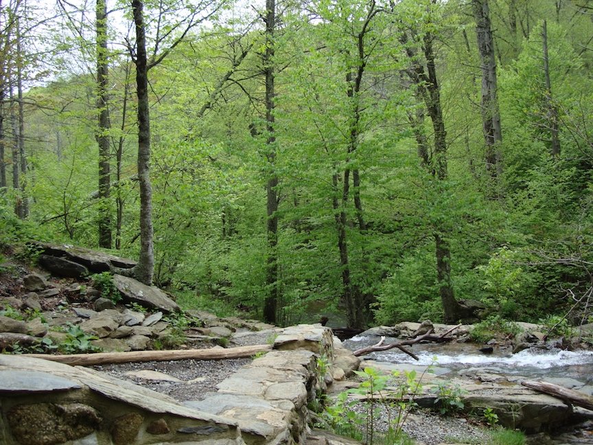 Congareeeee! We were lucky to take our first hike there in the rain, since, without rain, you get eaten by mosquitoes. On our second hike, we were surrounded by flies, and flies hitched rides on Sally's ears. But, this was a beautiful and interesting park where we learned new things from the signs along the trails, and we would be happy to visit again. Cyuahoga is great. We walked all along the trails and thought they would be perfect for biking (which a lot of people do). Sally watched squirrels chasing each other. We talked about going back, and, later on, we did. This was our second trip to Shenandoah, and we loved it again. Lots of pretty hiking, and everything is so green! This was Sally's first time in Shenandoah. She has always been a city dog, living in condos in South Florida, so she was not entirely comfortable in our rustic cabin in the wilderness. She did not want to pee when I took her out, and, on the first night, we eventually needed Richard's help. There were fireflies, which, in non-complete darkness, have always appeared yellowish. Here, they were like laser points of bright white light. At first I thought someone was messing with us with a light somewhere. Then, later, we heard there actually are white fireflies in that area of Virginia. We left in a giant thunderstorm, and she wouldn't allow Richard to leave her alone in the room to pack up the car. So she had an easy time doing her business on the streets of New York...where she was also slightly surprised by how people walk by quickly and do not look her in the eye and say "aww, cute puppy." (She turned around to look up at a few people on every walk.) This was our first trip to Great Smoky Mountains National Park and Gatlinburg, TN.