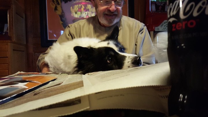 We stayed at the hotel with the weird middle and parking lot underneath, had to block the back of our table with garbage and recycling containers, and Richard stuck is head in the mammoth's mouth. And we visited Richard's dad.